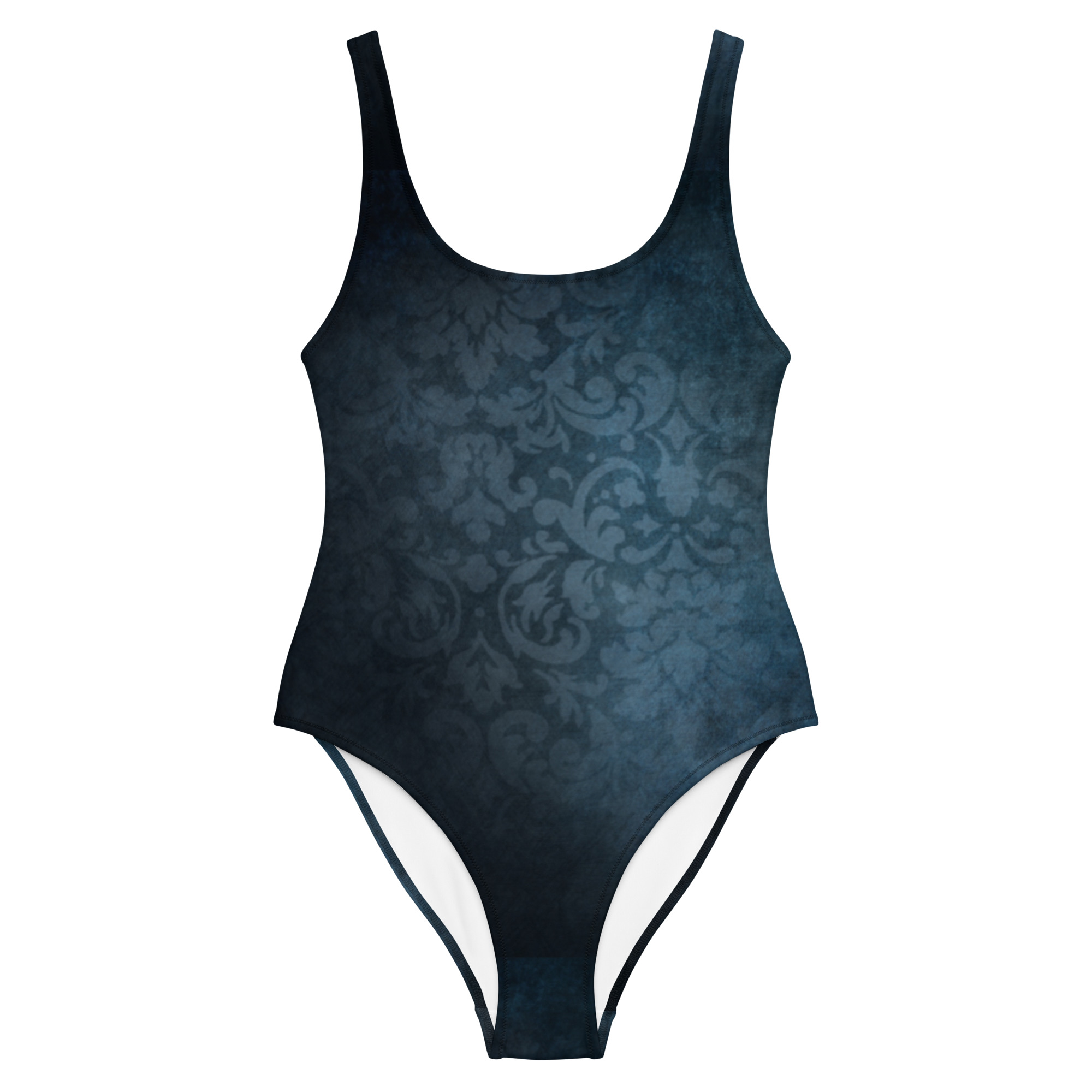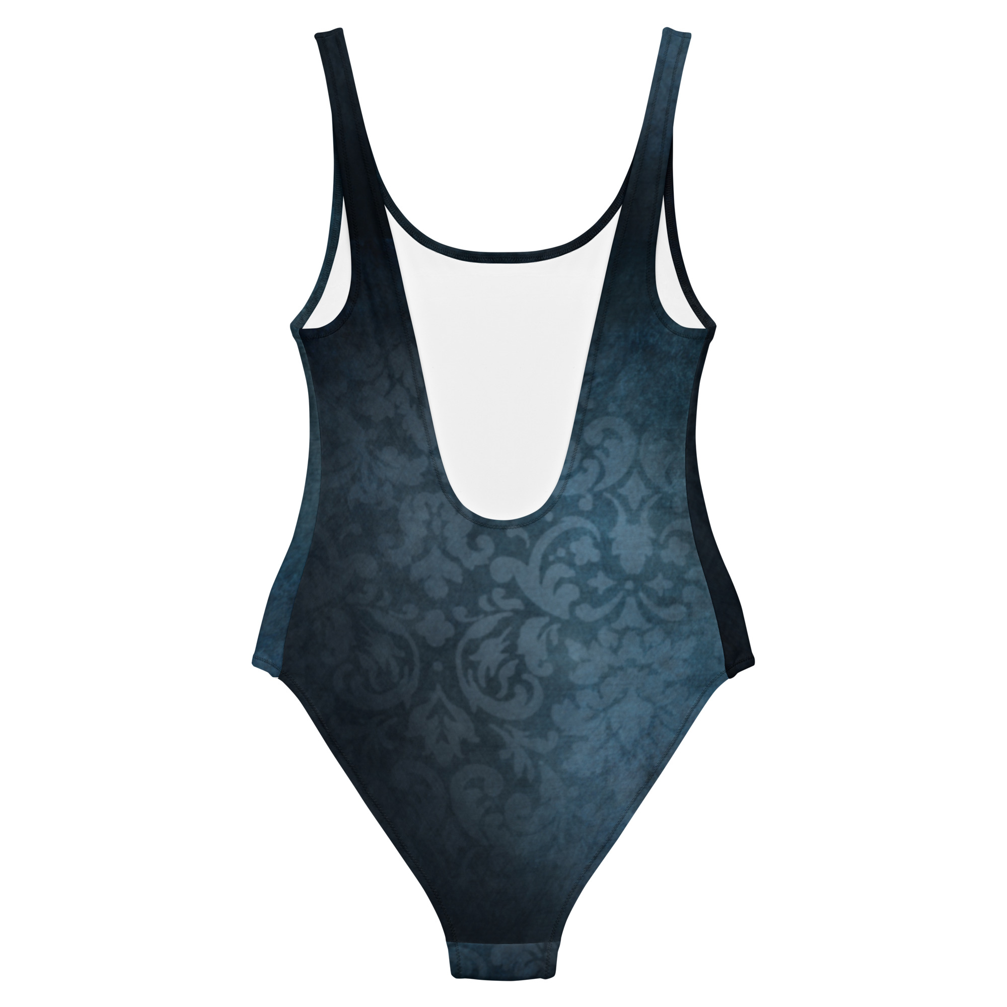 Casual Black and Blue Scroll One-Piece Swimsuit