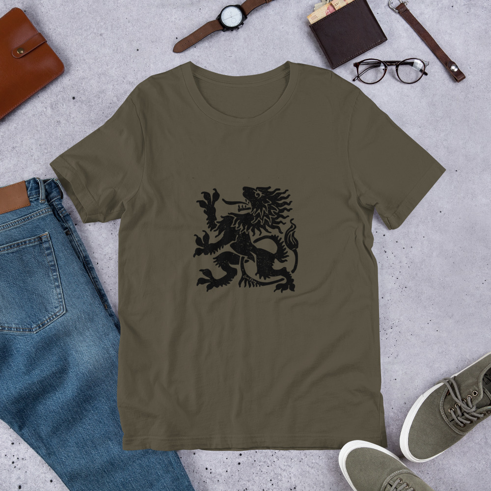 Silhouette of the heraldic lion t-shirt is a symbol of courage and personal strength and power. The lion beast is a spirit animal most often portrayed in heraldry. While there are many t shirts, the lion rampant is feels soft and lightweight, with just the right amount of stretch and oh, so comfortable and flattering!